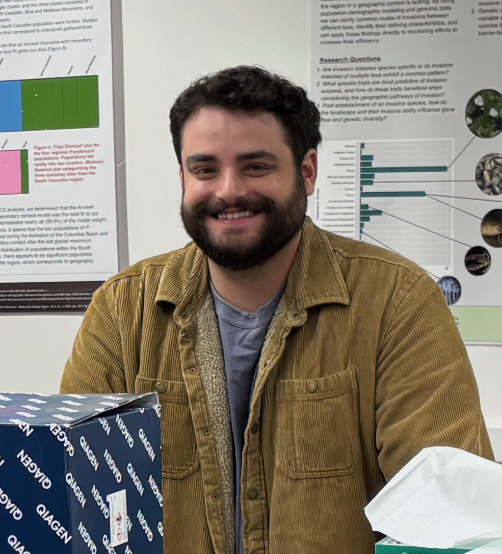 Jesse participated in the 2018 EEOB Next-gen REU and worked with Megan Smith sequencing invertebrates that live in leaf litter from the Pacific Northwest for an undergraduate research project. After spending a few years working as a technician in Michigan, we are excited to have her back in the lab to conduct dissertation research on the landscape genetics of invasive species.